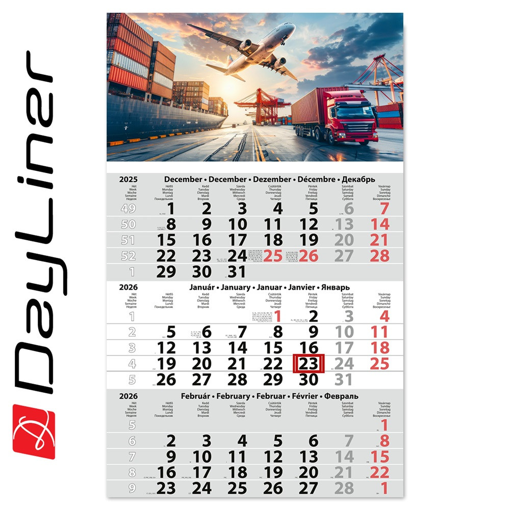 SPEDITŐR NAPTÁR 1 TÖMB, 3 HÓNAP PRIMUS CLASSIC 300 × 480 MM, FEHÉR LAPOKKAL LOGISZTIKA DAYLINER 2026.