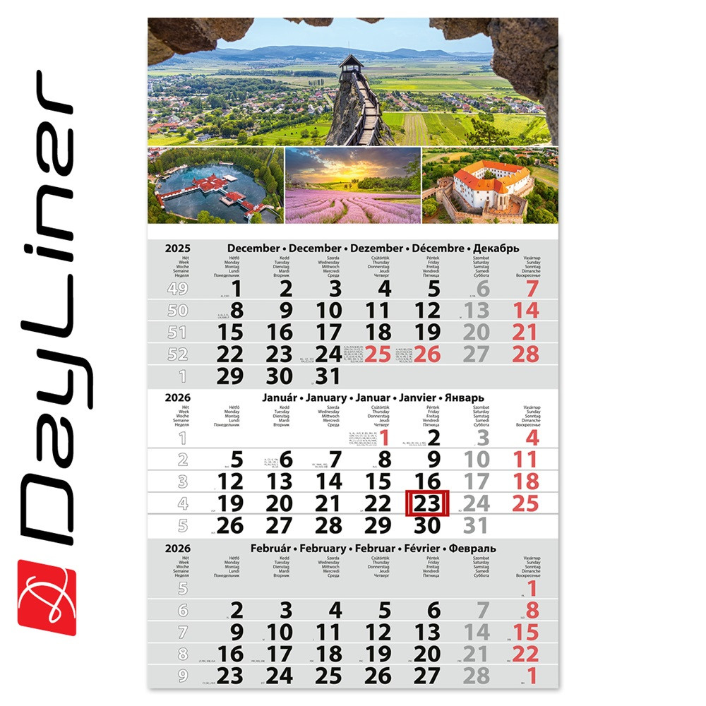 Speditőr naptár 1 tömb, 3 hónap Primus Classic 300 × 480 mm, fehér lapokkal Magyarország Dayliner 2026.