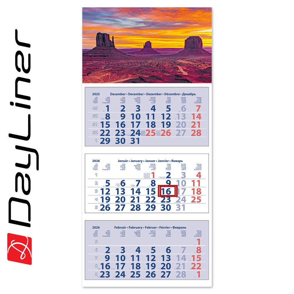 Speditőr naptár 3 tömb, 3 hónap Maxi Club 350 × 820 mm, fehér lapokkal Hangulat Dayliner 2026.