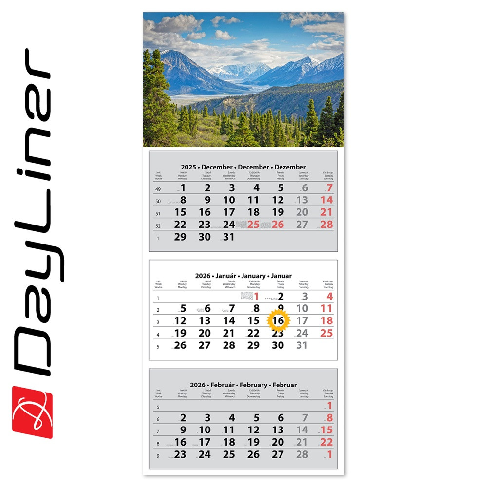 SPEDITŐR NAPTÁR 3 TÖMB, 3 HÓNAP SP-30 330 × 760 MM, FEHÉR LAPOKKAL HEGY DAYLINER 2026.