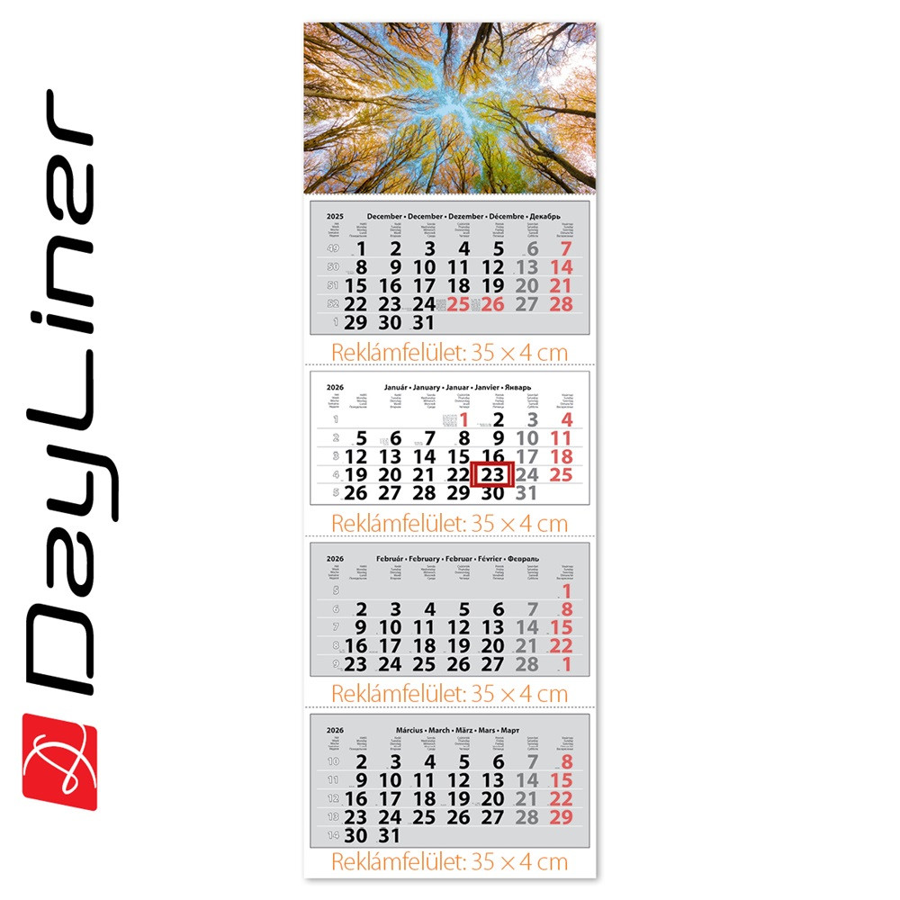 Speditőr naptár 4 tömb, 4 hónap Szuper Maxi 350 × 1025 mm, fehér lapokkal Erdő Dayliner 2026.