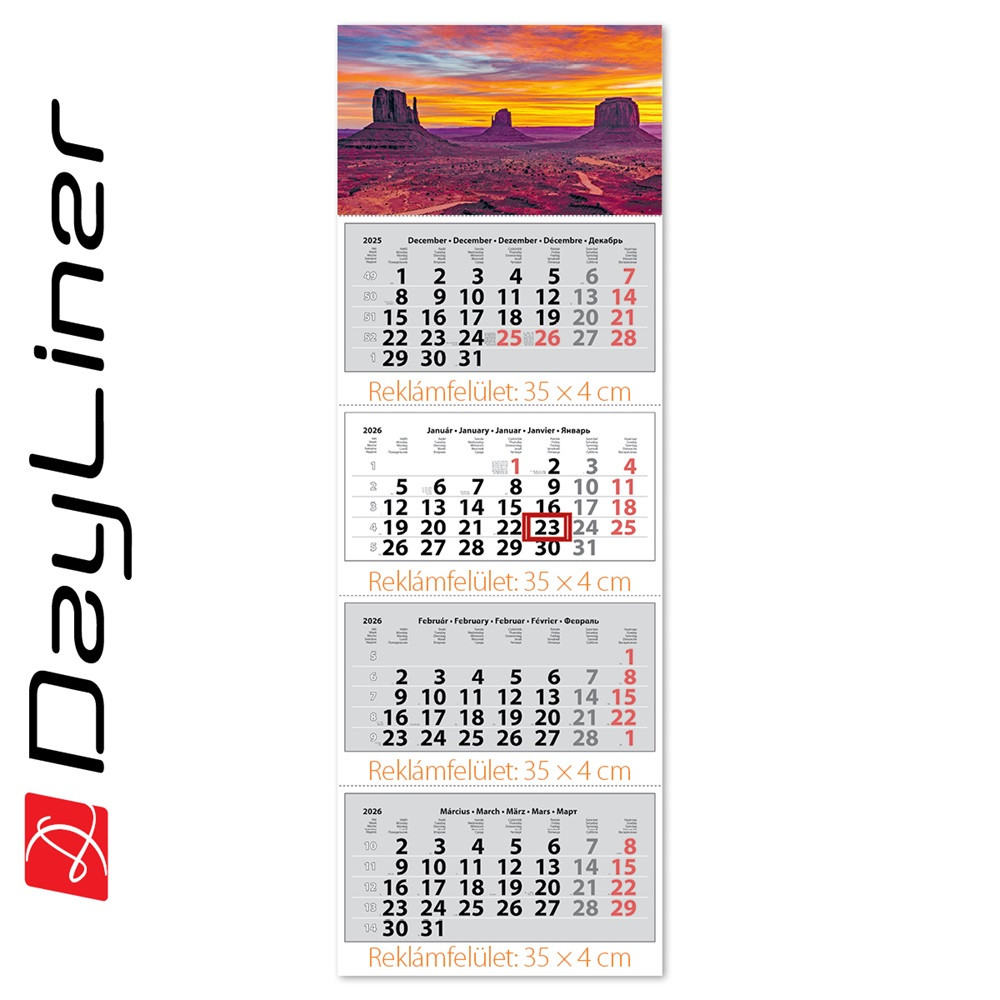 Speditőr naptár 4 tömb, 4 hónap Szuper Maxi 350 × 1025 mm, fehér lapokkal Hangulat Dayliner 2026.