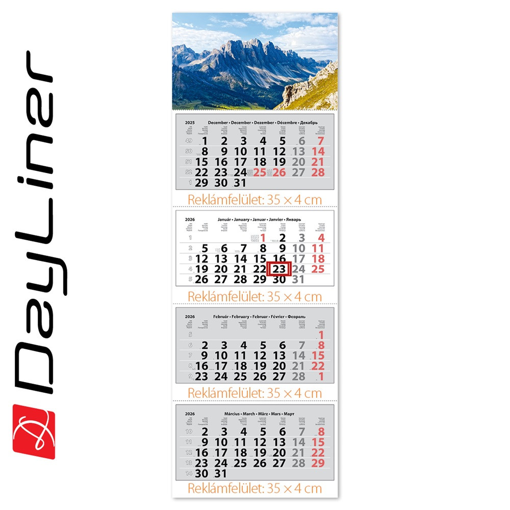 Speditőr naptár 4 tömb, 4 hónap Szuper Maxi 350 × 1025 mm, fehér lapokkal Hegy Dayliner 2026.